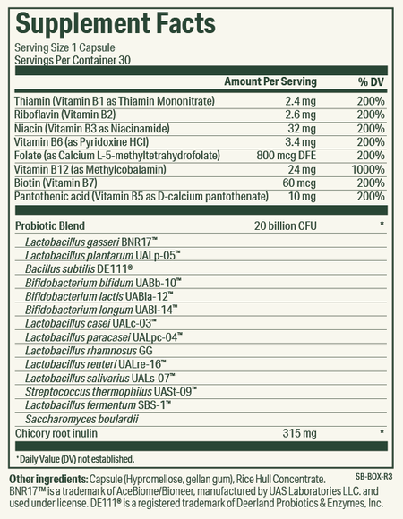Synbiotic 365 offers a range of benefits, including improved gut health, better digestion, and enhanced nutrient absorption. It supports a healthy immune system, boosts energy levels, and may help with weight management by optimizing metabolism and reducing bloating. Additionally, the combination of B-vitamins and probiotics can enhance mental clarity and overall well-being